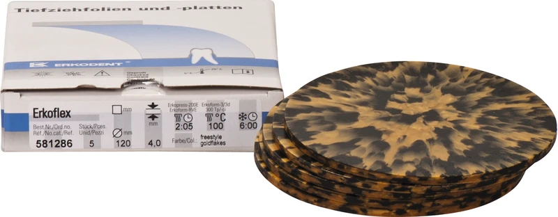 | Variant | <b>Pakke</b> 5 vakuumformingsfilmer goldflakes, Ø 120 mm, tykkelse 2 mm |