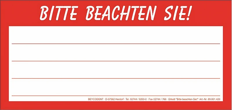 Med „Bitte beachten Sie“ etiketter fra Medico Service forbedrer du pasientkommunikasjonen og bidrar til en smidig praksisflyt.