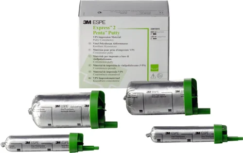 3M™ Express™ 2 Penta™ Putty Vinyl-polysiloksan avtrykksmateriale for korrigeringsteknikk for automatisk blanding og dosering i 3M™ Pentamix™ systemet.