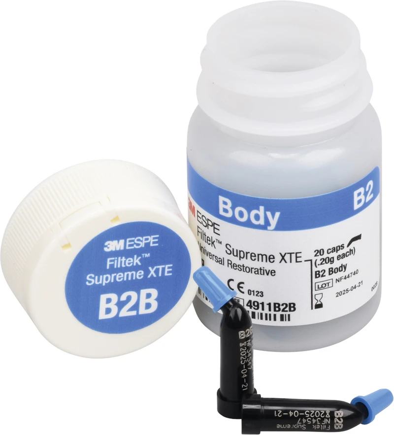 Det allsidige 3M™ Filtek™ Supreme XTE Universal er utviklet for alle typer restaurering – enten i front- eller sidetenner – og kjennetegnes av utmerket polerbarhet, enkel anvendelse og enestående styrke. Dette universelt anvendbare fyllmaterialet er et fluorescerende, røntgenopakt kompositt, for de høyeste estetiske krav. Tilgjengelig i 36 fargetoner og 4 opasiteter (dentin, kropp, emalje, translusent).