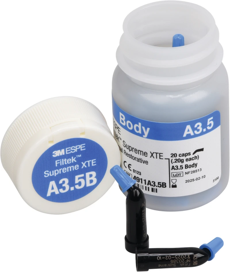 Det allsidige 3M™ Filtek™ Supreme XTE Universal er utviklet for alle typer restaurering – enten i front- eller sidetenner – og utmerker seg med fremragende polerbarhet, enkel anvendelse og enestående styrke. Dette universelt anvendbare fyllmaterialet er et fluorescerende, røntgenopakt kompositt, for de høyeste estetiske krav. Tilgjengelig i 36 fargetoner og 4 opasiteter (dentin, kropp, emalje, translusent).