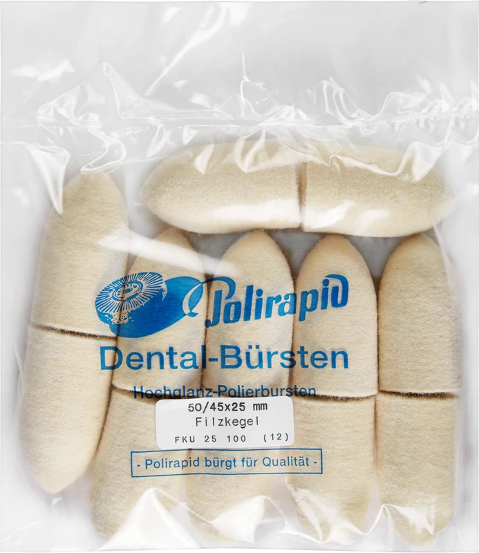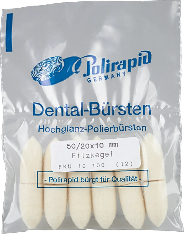 Filtkjegle av høykvalitets ullfilt i ulike størrelser (også for poleringsspindelen).