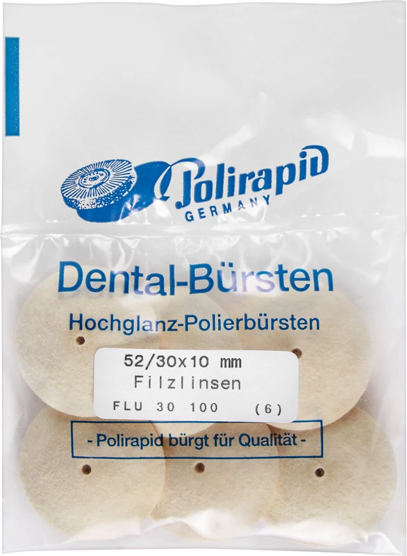 <b>Pakke</b> 6 børster umontert, filt, figur linse, Ø 30 mm, tykkelse: 10 mm