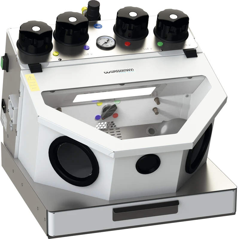 - Rask avlufting av helmetall strålemiddelbeholdere for rask etterfylling og bytte av strålemiddel