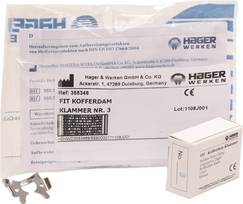 Molarenklammer med vinger, dyptgående. Fit-Kofferdam® klammer kjennetegnes av tynne vegger, høy kvalitet og spesielt høy spennkraft.