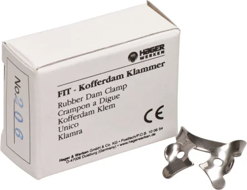 Fit-Kofferdam® Prämolarenklammer med vinger kjennetegnes av tynne vegger, høy kvalitet og spesielt høy spennkraft.