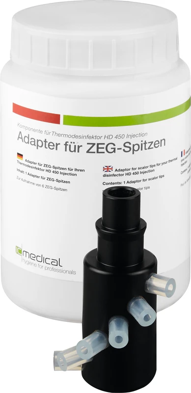 Spesielt for fagområdet tannhelse tilbyr vi en Flexio Adapter für ZEG-Spitzen. Takket være silikonopptakene kan opptil 6 tannstein- og ultralydspisser fra vanlige produsenter påføres og hygienisk behandles. Også kompatibel med andre termodesinfektorer med injeksjonsskinne, for dette trenger du bare vår gjengekobling M8x1.