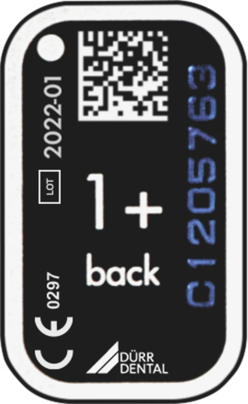 Kobberpunkter for påføring på baksiden av intraorale lagringsfilmer for å identifisere en speilvendt eksponering.