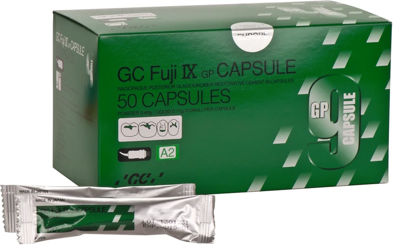 Stopfbar glasionomersement med høy tyggepress- og abrasjonsstabilitet. Ingen kofferdam nødvendig. Lett bearbeiding. Kan brukes med metallmatrise. Godt røntgensynlig. Enkeltlagsfylling. Utmerket biokompatibilitet. Kjemisk vedheft til dentin og emalje. GC Fuji® IX GP tilbyr i tillegg: Forkortet herdetid. Fast konsistens. Sterkere for lengre holdbarhet.
