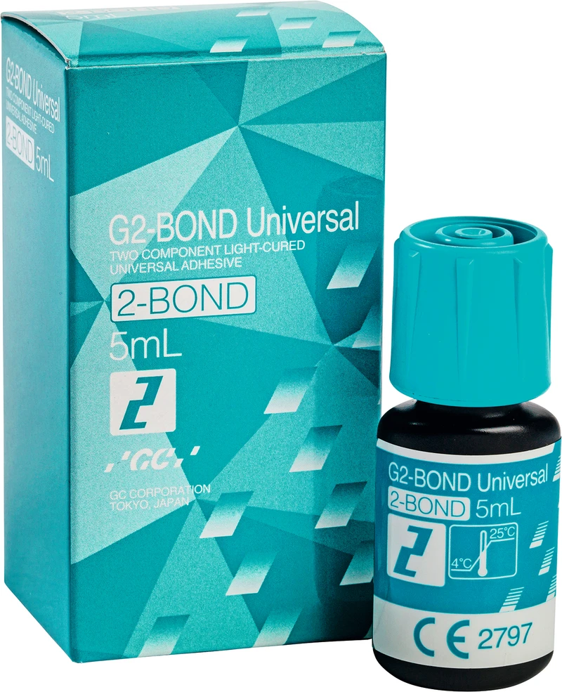 GC G2-BOND Universal ble utviklet for å forbedre restaureringer og er et allround-adhesiv som lar klinikere enkelt velge mellom alle 3 etsingsmoduser i ett system. Produktets allsidighet omfatter dets effektivitet ved flere indikasjoner som direkte restaureringer, umiddelbar dentinforsegling (IDS), intraoral reparasjon, behandling av overfølsomhet, sementering av indirekte restaureringer og mer.