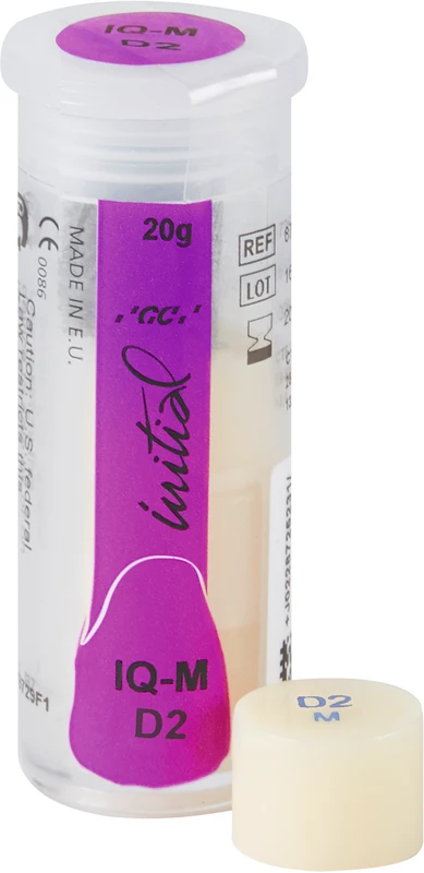 GC Initial™ IQ P-O-M One Body, Press-Over-Metal er et feltspatbasert presskeramikksystem for standard påbrenningslegeringer (WAK-område 13,8-14,9). Systemforbindelse med Lustre Pastes NF, tredimensjonale keramiske farger.