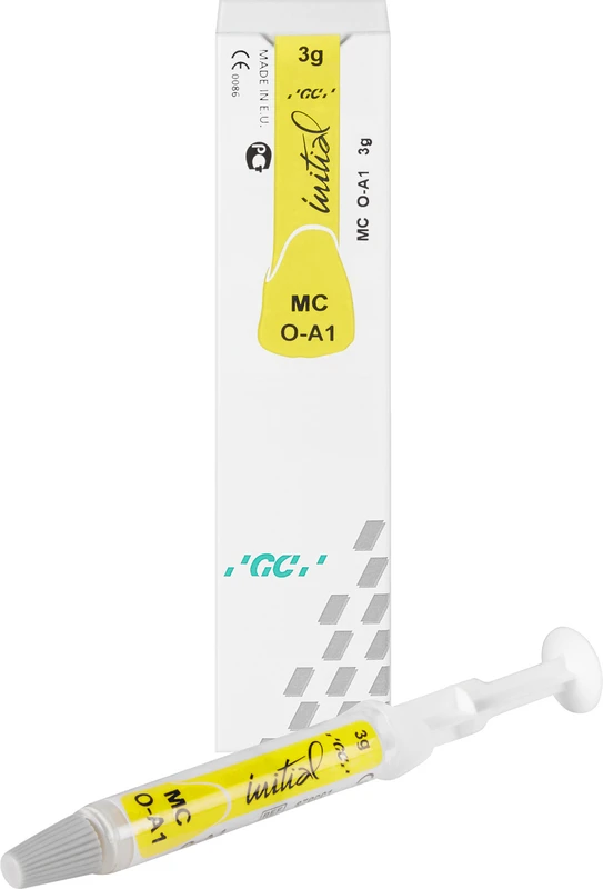 Dette gjør at GC Initial™ MC kan brukes universelt for alle konvensjonelle legeringer, uavhengig av om disse inneholder sølv, har redusert gullinnhold eller er basert på palladium. Selv NEM og galvanokroner kan enkelt dekkes med GC Initial™ MC, likeledes stumpoppbygginger (GC Cosmotech Vest).