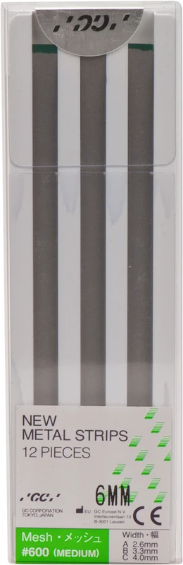 Fargekodede metallstriper med elektroplaterte aluminiumoksidpartikler for approximal konturering og finishing samt polering av alle fyllingsmaterialer. Håndterlig, svært fleksibel og holdbar, kan steriliseres flere ganger eller autoklaveres.