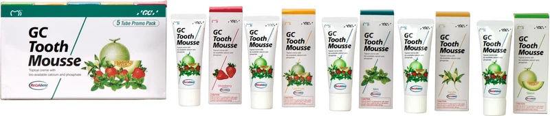 GC Tooth Mousse™ er det første produktet for profesjonell bruk som inneholder denne CPP-ACP-komplekset (Recaldent™) – en ideell kilde for biotilgjengelige kalsium- og fosfationer. MI Paste Plus inneholder i tillegg en unik, patentert form for fluorid.