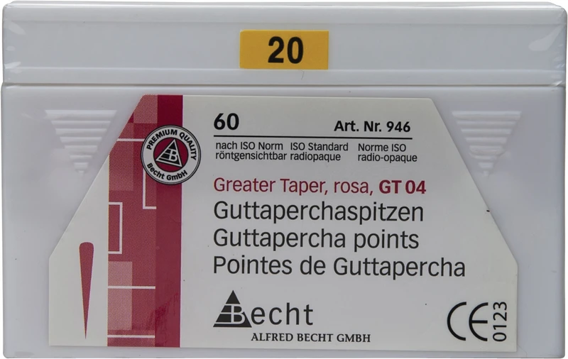 Greater Taper.04 og .06 produseres i kjent kvalitet; konisiteten til disse spissene tilsvarer instrumentariet for preparering av rotkanalene, f.eks. etter Step back-teknikken.