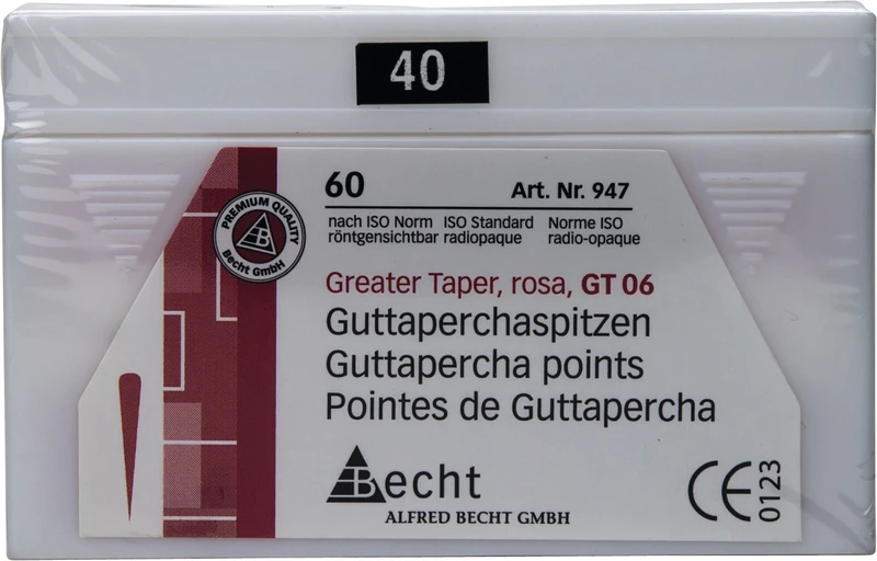 Greater Taper.04 og .06 produseres i kjent kvalitet; konisiteten til disse spissene tilsvarer instrumentariet for preparering av rotkanalene, f.eks. etter Step back-teknikken.