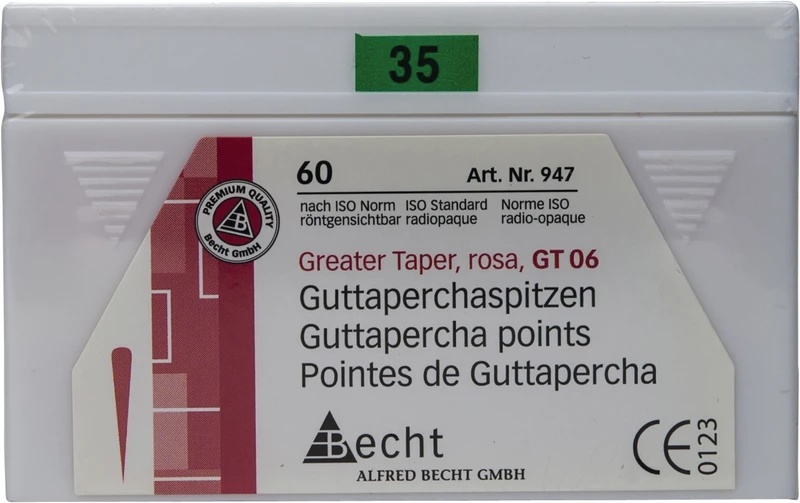 Greater Taper.04 og .06 produseres i kjent kvalitet; konisiteten til disse spissene tilsvarer instrumentariet for preparering av rotkanalene, f.eks. etter Step back-teknikken.