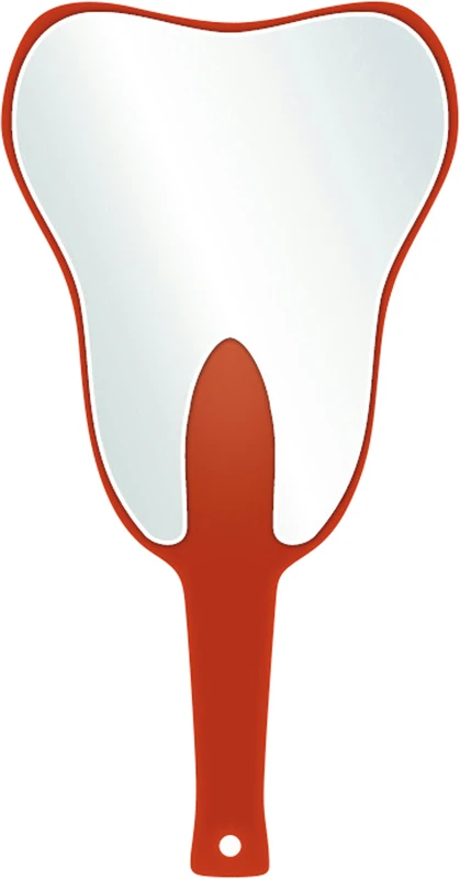 Handspiegel ZAHN i form av en tann med håndtak, tilgjengelig i 5 farger: RØD, BLÅ, GUL, GRØNN og PINK, lengde 27 cm.