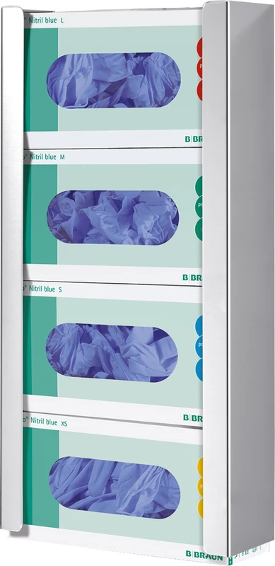 Veggholder for oppbevaring av dispenserbokser med undersøkelseshansker.