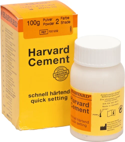 Sinkfosfatsement med kort herdetid for den definitive festingen av kroner, broer, inlays og onlays på naturlige tannstumper og for sementering av implantatbårne suprakonstruksjoner.