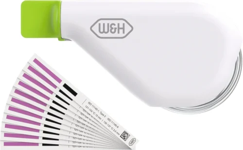 - En revolusjonerende sporbarhet for steriliseringstester: Hver stripe er utstyrt med en unik matriskode som muliggjør en entydig tilknytning av den kjemiske indikatoren til testsyklusen. W&H forbedrer også muligheten til å ta bilder av testresultatene for å lage digitale steriliseringlogger med den nye e-Log-funksjonen fra W&H
