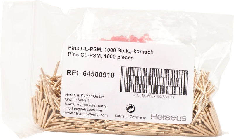Heraeus-pinnene er svært slanke, korte og kan også brukes i smale segmenter. Trinnpinner med plasthylse gjør det vesentlig enklere å ta tannkransen av gipsstativet ved første gangs fjerning. Koniske pinner egner seg for hyppig uttak av sagstumpen.