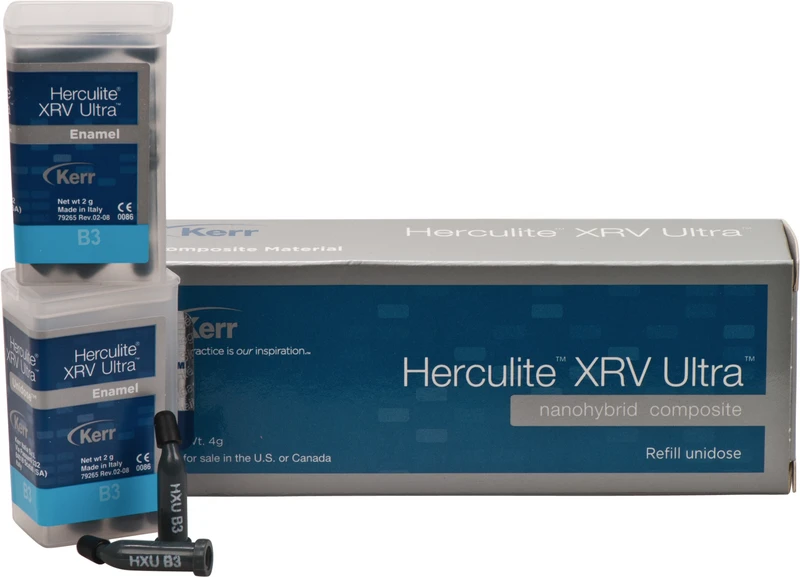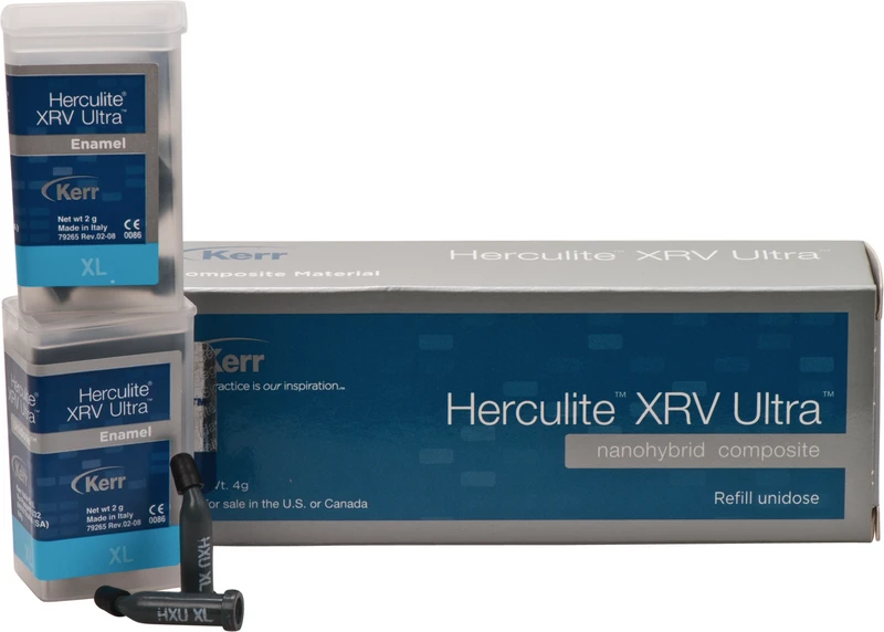 I mer enn 20 år har HERCULITE® XRV vært en standard innen fyllingsmaterialer. Basert på et sterkt merke ble et nytt fyllingsmateriale utviklet: HERCULITE® XRV Ultra™ nanohybridkompositt. Dette innovative komposittet forener avansert fyllerteknologi med økt estetikk og optimalisert håndtering. Ytterligere overbevisende egenskaper er naturlig opalescens og fluorescens, økt slitasjemotstand, høy trykkfasthet og over gjennomsnittet bruddstyrke.