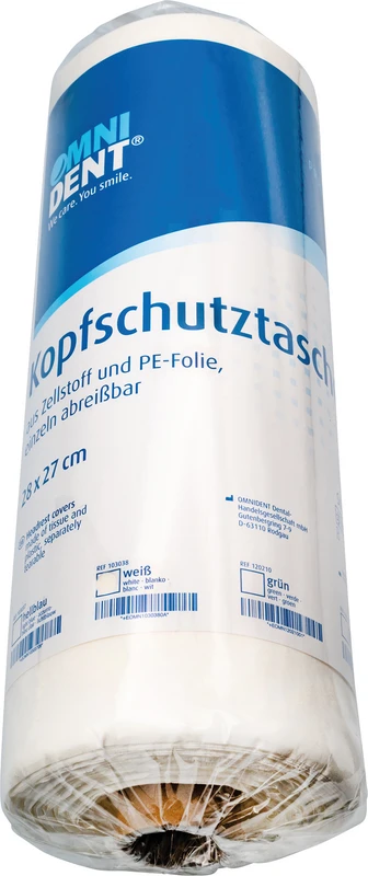 Hodebeskyttelsesposer med ett lag cellulose og PE-folie med praktisk avrivningsperforering, for beskyttelse mot forurensning, svette osv. Passer til alle vanlige behandlingsenheter.