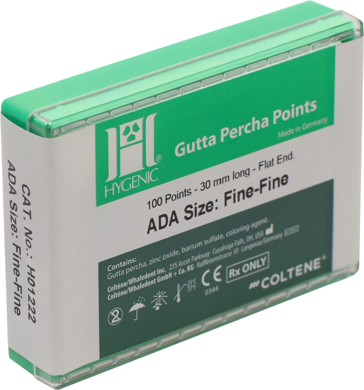 Hygenic Guttaperkaspisser produseres maskinelt ved bruk av nøye utvalgte råmaterialer. Den maskinelle produksjonen garanterer maksimal hygiene og en jevn produksjonskvalitet. Hygenic Guttaperkaspisser er egnet for alle kondensasjonsteknikker (lateralt og vertikalt).