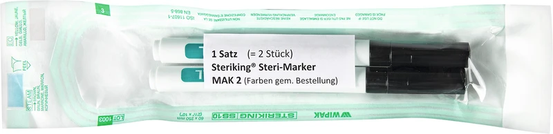 Vannfaste, varmebestandige markører for steriliseringspakninger.