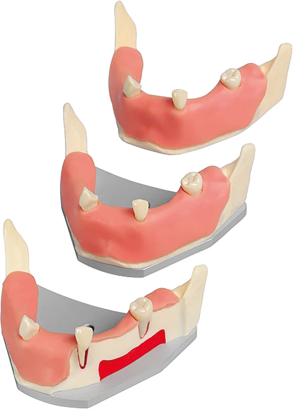 implantat-underkjeve med myk tannkjøttpute og monteringsplate for feste i fantomhode.