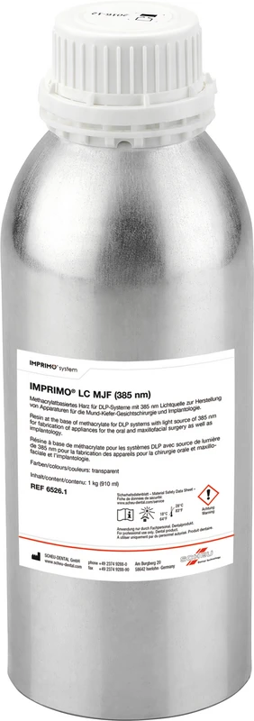 Lysherdende, metakrylatbasert og hemokompatibel harpiks i MPG-Klasse IIa for fremstilling av apparater for munn-, kjeve- og ansiktskirurgi samt implantologi. Egnet for plasma-, autoklav-, gamma- og etylenoksid-sterilisering. For dette unike, blodkompatible printmaterialet åpner det seg en rekke anvendelser med svært høye krav til biokompatibilitet, som f.eks. implantatboringsjabloner eller NAM-plater. Tilpasset DLP-systemer med en lyskilde på 385 nm.