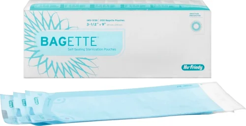 Bagetter laget av spesielt stabilt materiale har forsterkede sømmer og en selvklebende lukking for enklest håndtering. Det spesielle designet, tilpasset de forskjellige kassettstørrelsene, reduserer materialforbruk og arbeidstid. To integrerte indikatorstriper (innvendig og utvendig) viser at de vellykkede parametrene for sterilisering er oppnådd.
