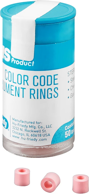 Fargekodingsringer i silikon for identifisering og sortering av instrumenter. Ringene er spesielt egnet for å oppbevare instrumentene i kassene i nødvendig rekkefølge og for rask identifikasjon for ønsket prosedyre.