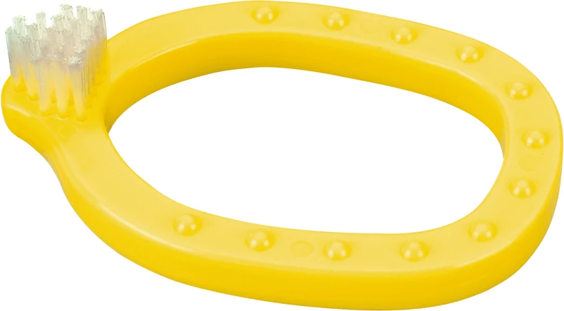 Lærings tannbørste for babyer fra 3 måneders alder. Samtidig en bitering for tannutvikling. Skader eller svelging av børsten er utelukket. Nopper fremmer dentisjon.