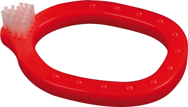 Lærings tannbørste for babyer fra 3. måned. Samtidig en bitering for tannutvikling. Skader eller svelging av børsten utelukket. Nopper fremmer dentisjon.