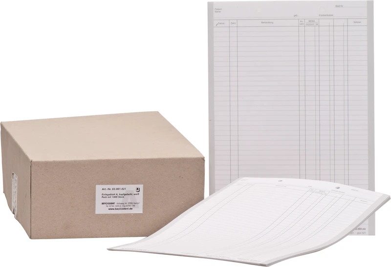 For dokumentasjon av behandlinger hos pasienter med offentlig helseforsikring er Einlegeblatt eller pasientjournal optimal.