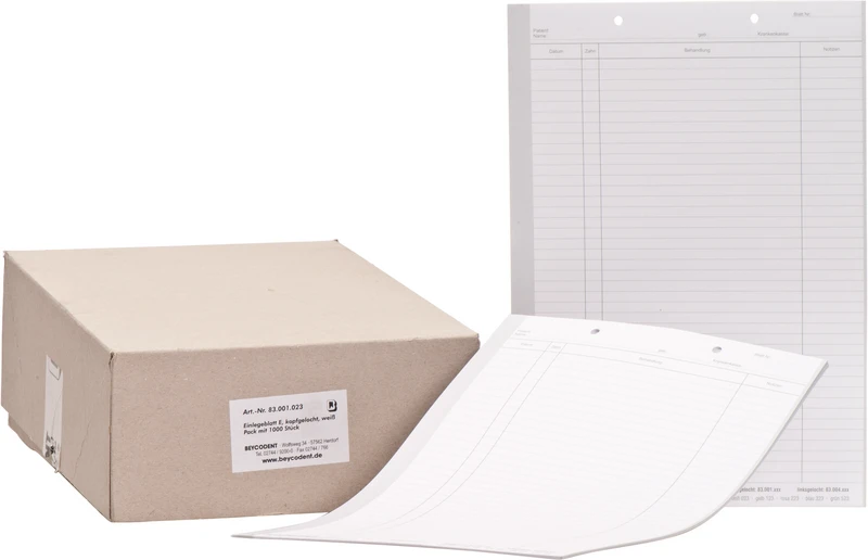 - Einlegeblatt A, B, D – med en kolonne for BEMA/GOZ eller BEMA-nr. posisjoner!