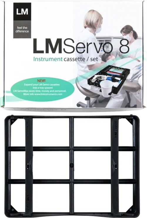 I LM-Servo kassett er instrumentene sikkert festet, men roterer fritt. Dette sikrer et optimalt rengjøringsresultat og en sikker infeksjonskontroll. Kassettene kan kodes med silikonknapper og festes til LM-ServoMax brettet med metallklips.