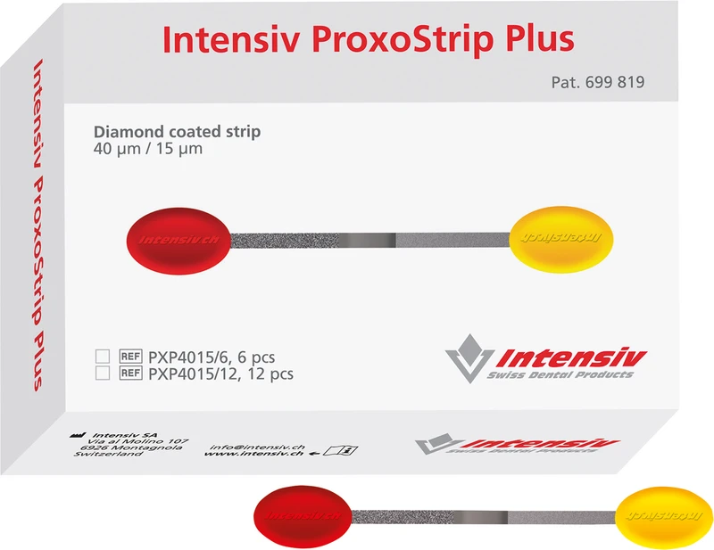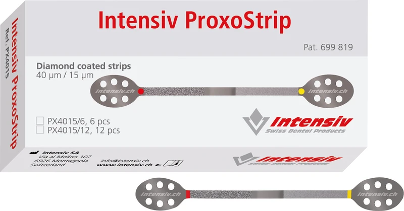 Unike, diamantbelagte metallstrips med gripevennlige stripender for final og homogen utjevning av approksimale flater ved estetiske restaureringer. Konturering, finering og polering i ett trinn. Kan steriliseres og er gjenbrukbar.