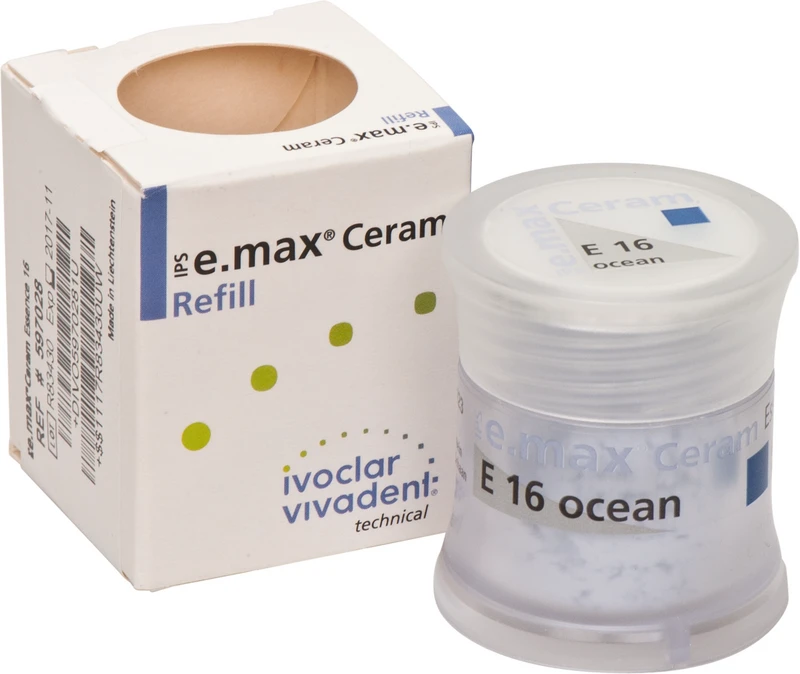 Die hochästhetische Nano-Fluor-Apatit-Glaskeramik IPS e.max® Ceram eignet sich aufgrund optimierter Kombination von tiefer Brenntemperatur und WAK zur Verblendung sowohl für die Presskeramik- als auch die CAD/CAM-geschliffenen Materialien des IPS e.max® Systems. Das durchgängige Schichtkonzept unterstützt die einheitliche und ausdrucksstarke ästhetische Erscheinung.