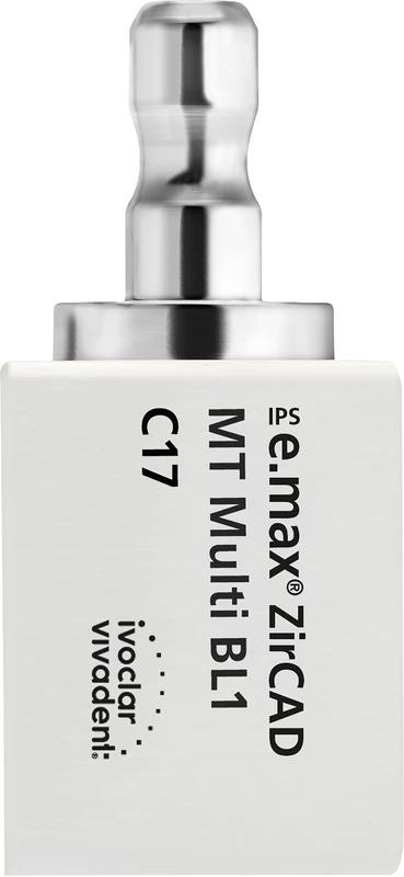 IPS e.max ZirCAD MT Multi-blokker har en naturlig farge- og translucensgradient fra dentin til skjær, og muliggjør høystetiske zirkoniumoksidkroner og 3-ledds broer med varsom preparering i en Same-Day-Behandling.