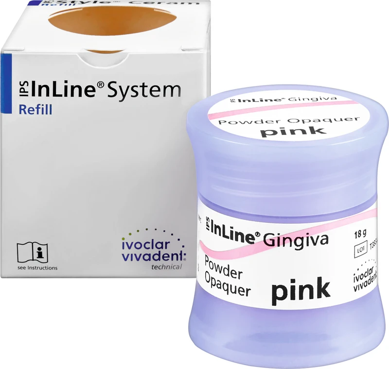 Det IPS InLine® System pulveropaquer er en pulveropaquer utviklet med en ny produksjonsmetode med optimaliserte egenskaper for metallkeramisk lag og pressteknikk. IPS InLine® System pulveropaquer er tilpasset påbrennbar legeringsstruktur fremstilt ved støping, CAD/CAM og lasersmeltingsteknikk.