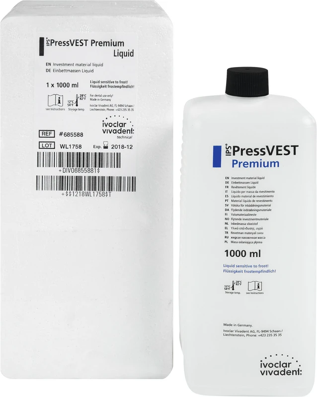 IPS® PressVEST Premium er den universelle, fosfatbundne innstøpningsmassen for Ivoclar Vivadent-presskeramikk. Den kan brukes både i det populære Speed- og i det konvensjonelle oppvarmingsforløpet. Spesielt kjennetegnes den av det minimale, lett avtakbare reaksjonssjiktet, de glatte overflatene og den svært høye passnøyaktigheten.