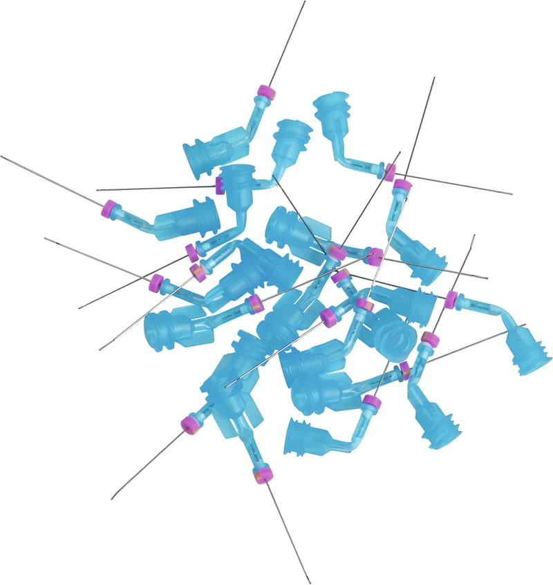 Spylenålen har en fleksibel dobbeltkanal-side med lukket ende som eliminerer hydraulisk trykk mot apeks og sikrer utmerket irrigasjon. Den finnes i to størrelser: 22 mm for side-tenner og 26 mm for front-tenner. Sertifisering: Medisinsk klasse I, EG?samsvarserklæring