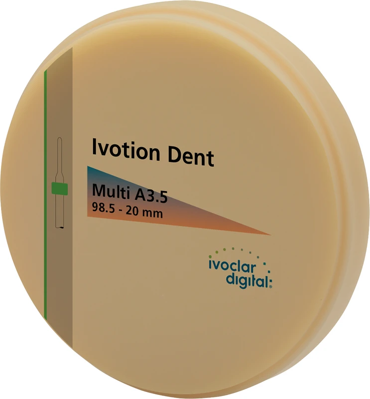 Ivotion Dent Multi er multikromatisk fargede skiver av DCL-materiale. Gjennom den innovative Pearl-Structure-Effect oppnås en harmonisk fargegang som gir protesetennene høy estetikk. De multikromatiske skivene er utviklet etter naturens forbilde i tre lag: Schneide – Dentin – Hals. Proteser produsert med Ivotion Dent Multi er dermed «ready to use»: Det er ikke behov for omfattende etterfølgende karakteriseringer.