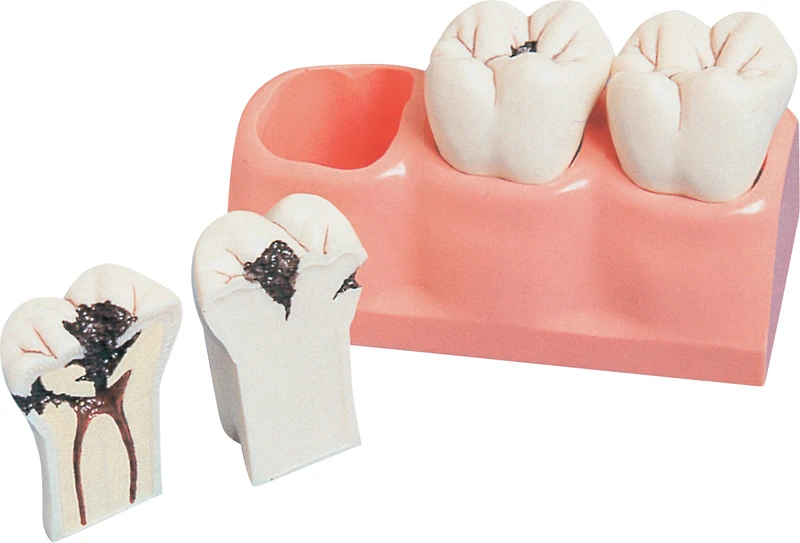 Demonterbart kariesdemonstrasjonsmodell; virkninger av karies på dentale pulpa i 3 trinn.