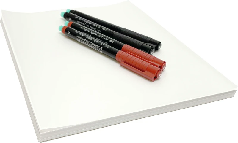 For kjeveortopediske FRS-opptak. Format: 18 x 24 cm. Sett med mellomark, kan viskes ut – egnet for Panocolor-penner. Blokk med 50 sett.
