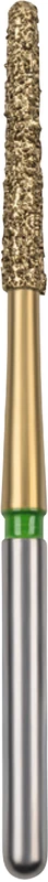 Kirurgisk diamantinstrument for atraumatisk deling av tenner og effektiv fresing av tannsubstans ved apikal reseksjon. Multilags diamantbelegg gir skånsom bearbeiding av tannsubstans og dermed redusert varmeutvikling. TiN høyytelsesbelegg sørger i tillegg for optimal transport av tannsubstans og lang levetid for diamantinstrumentene.