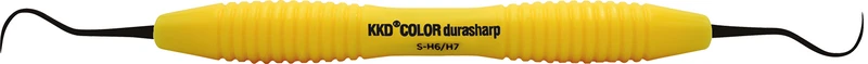 KKD® color durasharp parodontalinstrument med ergonomisk silikonhåndtak produseres i forskjellige farger. Arbeidsendene på instrumentene er laget av høykvalitets sveitsisk stål (AISI 440C). Den svært høye hardheten i stålet sikrer en utmerket skjæretaphet og slitasjebestandighet. Gjennom en ekstra belegning av arbeidspunktene med Titancarbid (TIC) optimaliseres egenskapene til premium-instrumentene og enkel rengjøring muliggjøres.